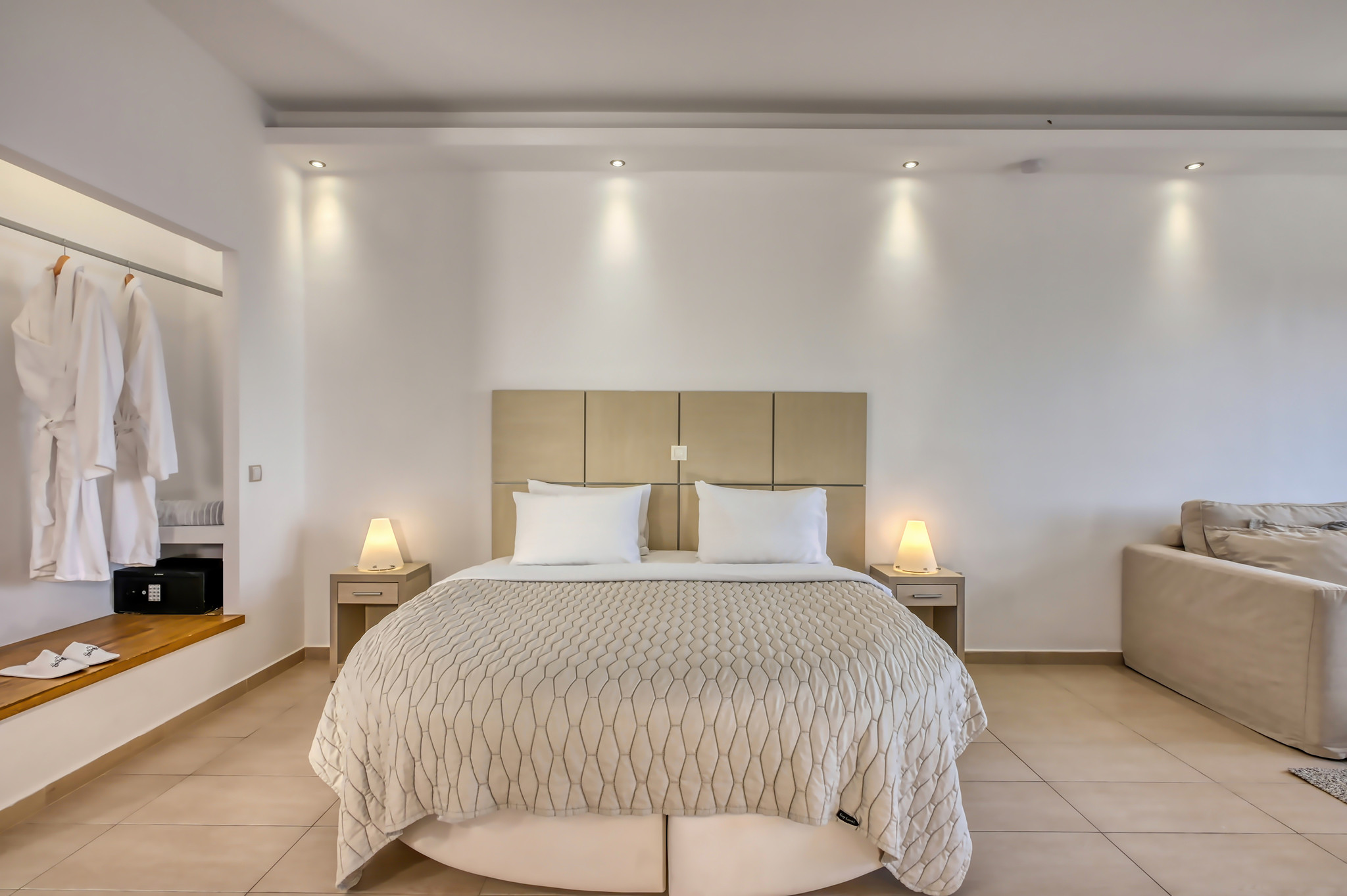 Experience an unforgettable honeymoon journey enveloped in luxury and romance. Picture yourself in the bubbling waters of your outdoor jacuzzi, surrounded by the harmonious panorama of the Aegean Sea. Inside, the elegant atmosphere painted in tons of white and beige is filled with stylish amenities and chic details. A unique oasis just for two, to celebrate your love with the ultimate relaxation!