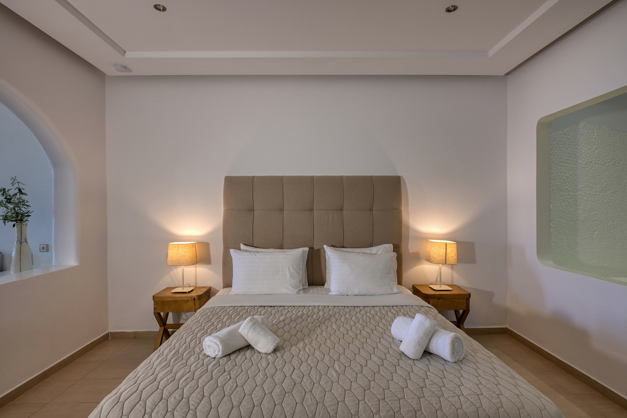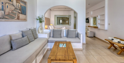 Designed with refined minimalism and warm Cycladic tones, the suite invites you to unwind in an atmosphere of effortless elegance. Take in sweeping sea views from your private haven, where the tranquil Aegean horizon becomes part of the experience. The spacious, modern bathroom promotes complete relaxation, while the indulgent indoor jacuzzi offers a serene escape for moments of pure rejuvenation. Elegant suite with indoor jacuzzi and stunning Aegean views.