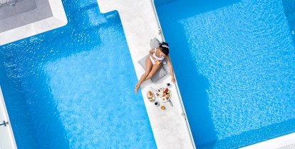 Delivering more than the usual experience of a poolside heaven, the pool area of Splendour Hotel & Suites travels through the blue hues that the east side of Santorini creates. Barefoot moments with a refreshing touch are served next to the water in the form of exquisite cocktails and favorite snack-meals, while phenomenal Aegean views guide the summer spirit in your body and soul. Find yourself in the dilemma between swimming or sunbathing, treat yourself with unrivaled views, and accompany this experience with new heights of pleasure.